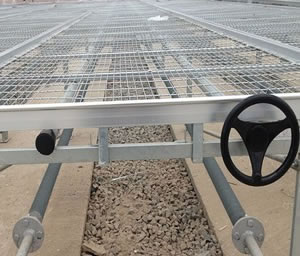 網(wǎng)面平整,焊接牢固,承重性好,尺寸準(zhǔn)確,安裝施工方便,抗腐蝕耐用。主體結(jié)構(gòu)材質(zhì)采用鋁合金邊框網(wǎng)格為130㎜×30㎜(長×寬),熱鍍鋅材料,防腐性能高,承重能力好,壽命長可,左右移動較長距離,高度方向上可以進(jìn)行微調(diào)具有防翻限位裝置,防止由于偏重引起的傾斜問題可在任意兩個苗床間產(chǎn)生約0.6(或0.8)米的作業(yè)通道。配置說明:溫室配置移動式苗床數(shù)量,根據(jù)育苗或生產(chǎn)實(shí)際用的溫室面積來定,使用壽命:編織網(wǎng)部分20年,其它結(jié)構(gòu)25年。